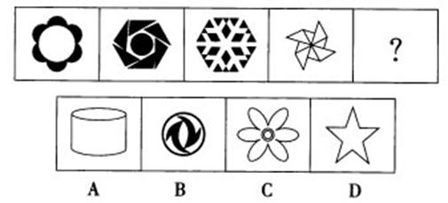 三、图形推理。请认真观察每组图形,理解其中含义,判断出它的逻辑和顺序,并在四个选项中选择你认为最合适的答案。