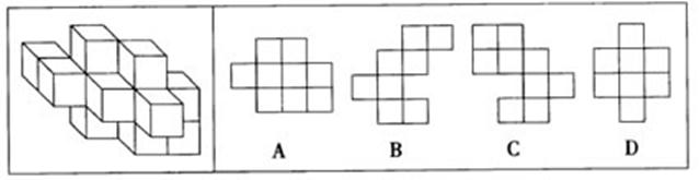 · (41). 如果从不同方向观察下面立体图形,选项中哪个是不可能出现的视图?( )
