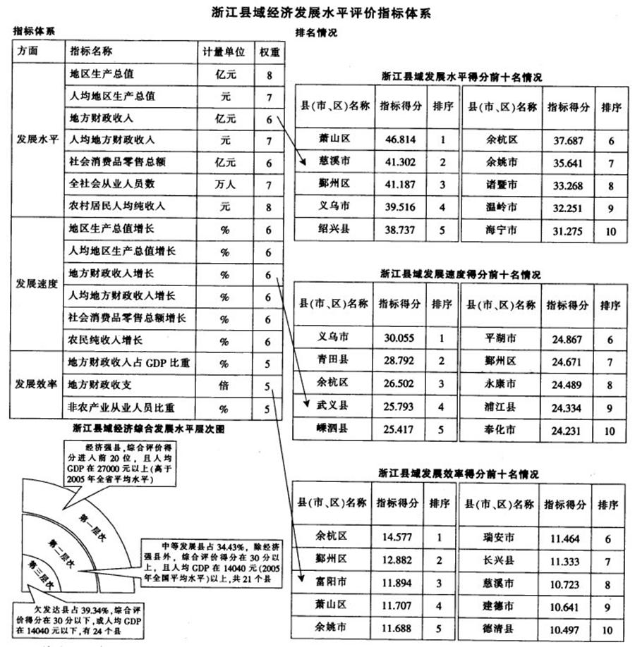 浙江县域“发展水平”方面的权重大约占评价指标体系:( )