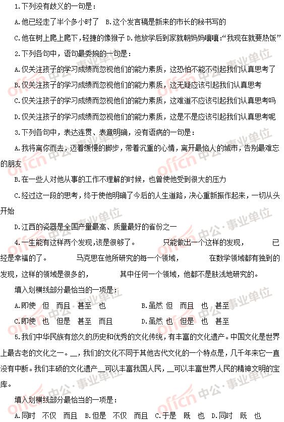 行政能力测试复习资料 | 2015公共基础知识题库 | 事业单位面试试题及答案