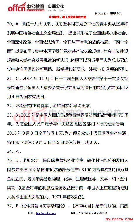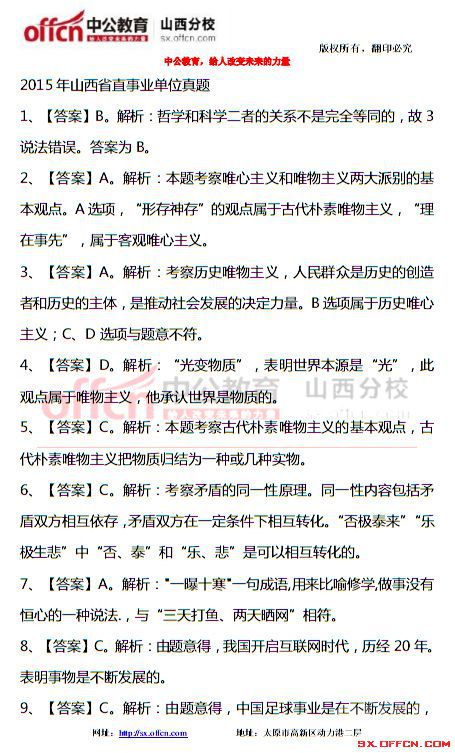 2015年山西省直事业单位笔试真题汇总(含答案解析)