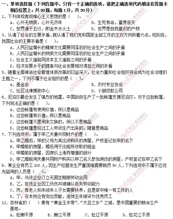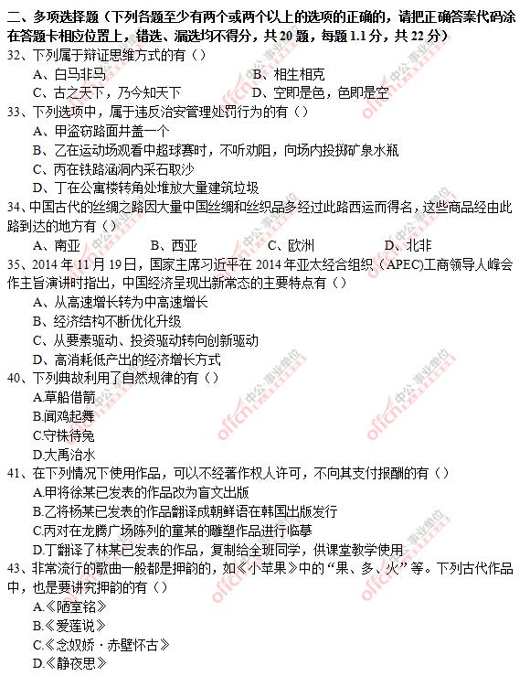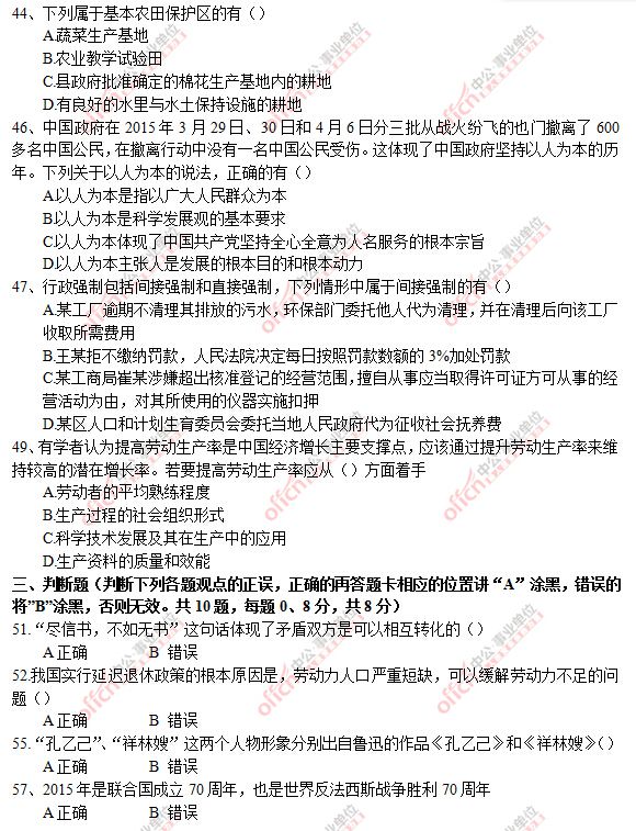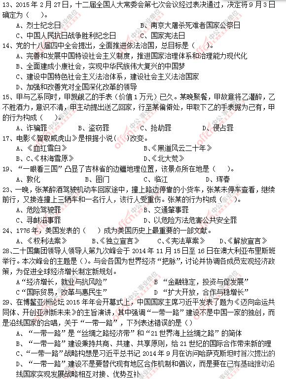 2015年吉林长春市事业单位《公共基础知识》部分真题