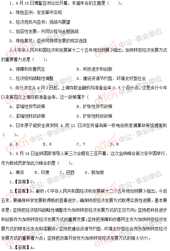 2011年辽宁大连市事业单位公开真题精选综合知识与能力测试