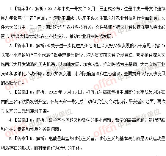 2012年贵州省金沙县事业单位真题精选公共基础知识
