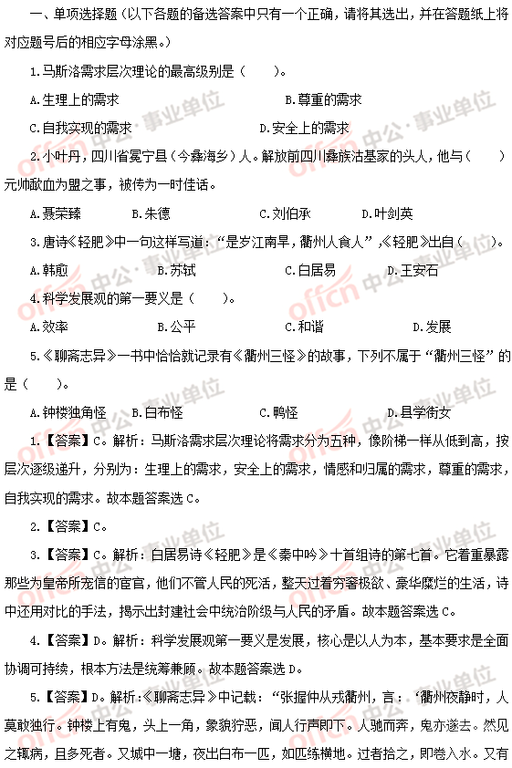 行政能力测试复习资料 | 2014公共基础知识题库 | 事业单位面试试题及答案