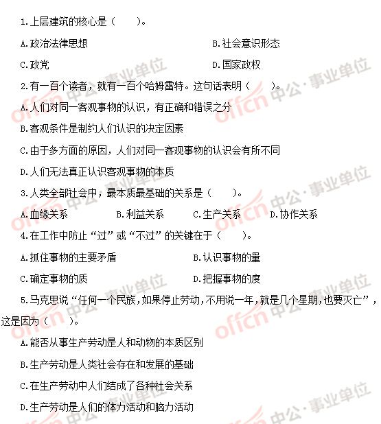 行政能力测试复习资料 | 2014公共基础知识题库 | 事业单位面试试题及答案
