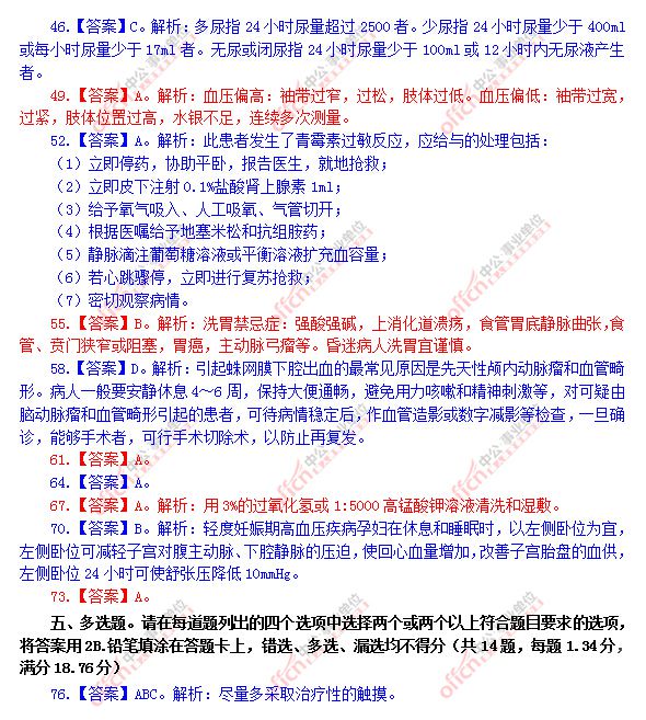 2014年吉林省四平市招聘《卫生护理综合知识》笔试部分真题解析