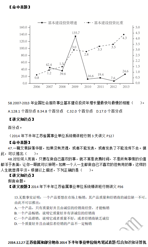 2014下半年江苏省属和部分地市事业单位统考《综合知识与专业素质》(管理类)真题