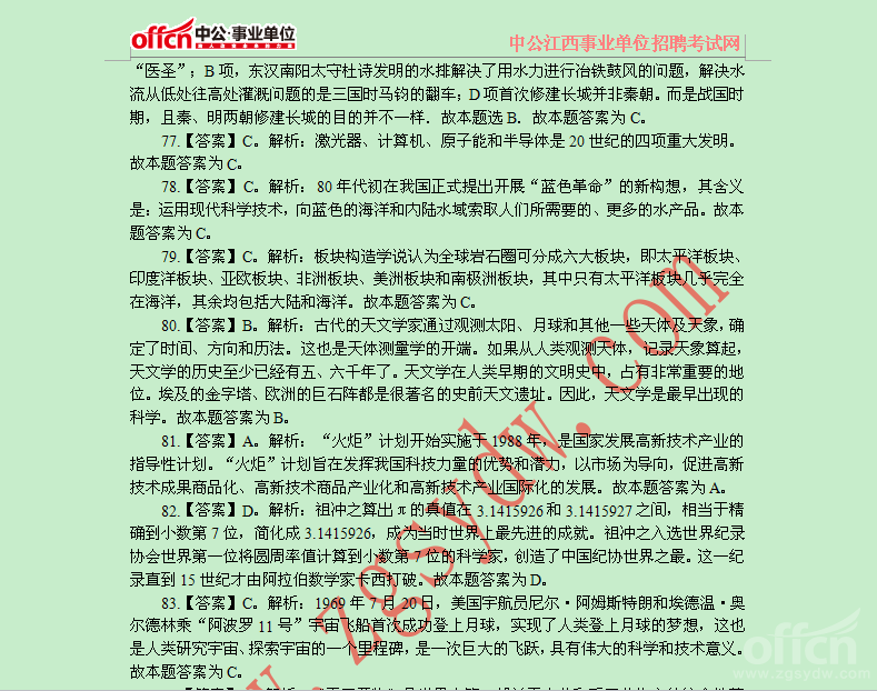 2014年11月16日下半年九江事业单位招聘综合基础知识答案解析