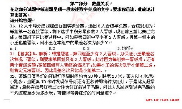 2014青海事业单位公共科目(行测真题及解析)数量关系