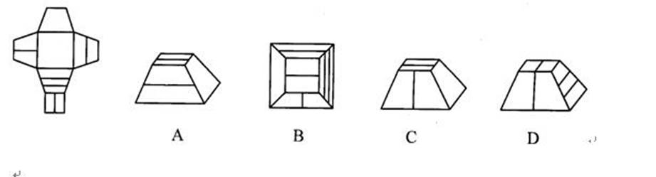 52. 左边给定的是纸盒的外表面,下面哪一项能由它折叠而成(C)
