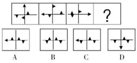 1.A【解析】此题的解题点是图形的位置。下一方格中三角形的位置是上一方格中三角形以顺时针方向移动大约一个边长距离的结果。且当三角形从端点(直线)移动到横线(竖线)上时旋转90°。