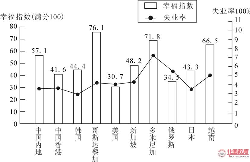 3.比中国内地失业率低的国家(地区),幸福指数均低于中国内地