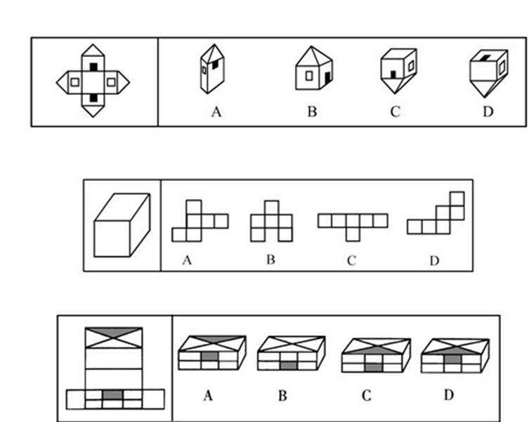 3.在右面的4个图形中,只有一个是由左边的纸板折叠而成。你需要选出正确的一个。