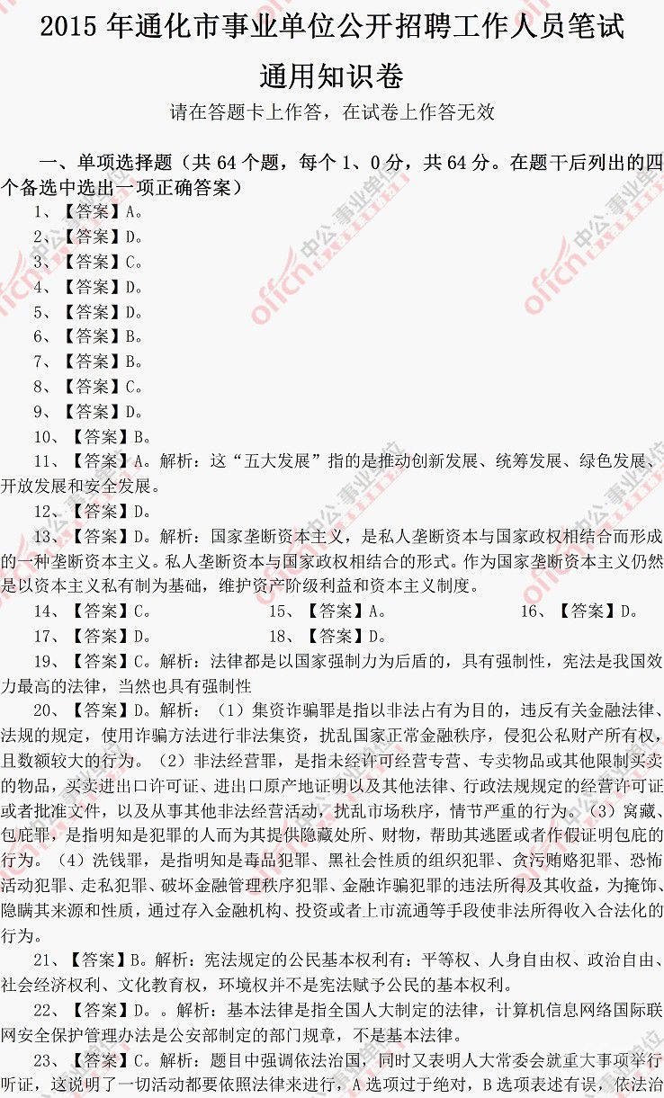 2015年吉林省通化市事业单位招聘《通用知识》真题详解