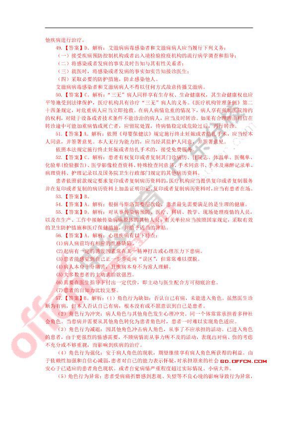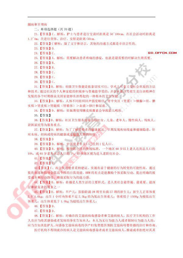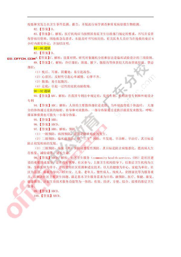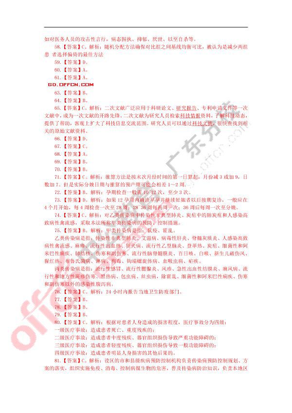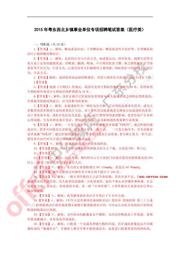 2015年粤东西北乡镇事业单位专项招聘笔试答案(医疗类)
