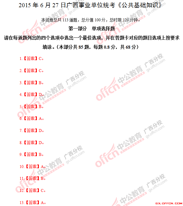 91考试网命中2015广西事业单位考试真题-公共基础知识
