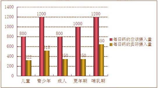 根据卫生部门的全国规模的营养调查,表明中国人普遍缺钙,摄入量仅为人体所需40%-50%