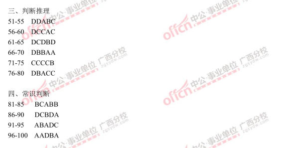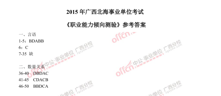 2015年广西北海事业单位《职业能力倾向测试》参考答案