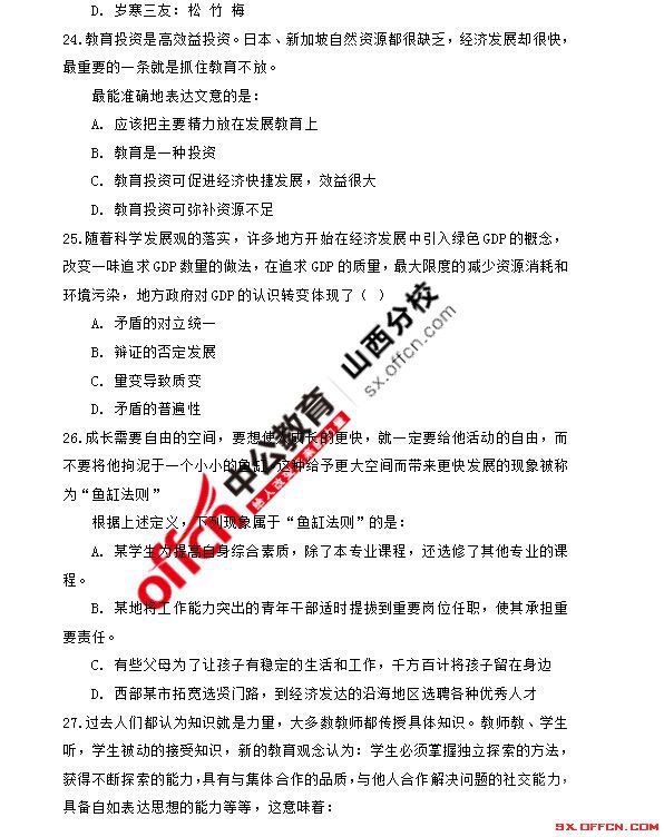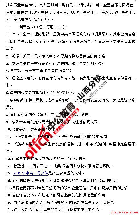 2015年12月26日山西长治事业单位笔试真题