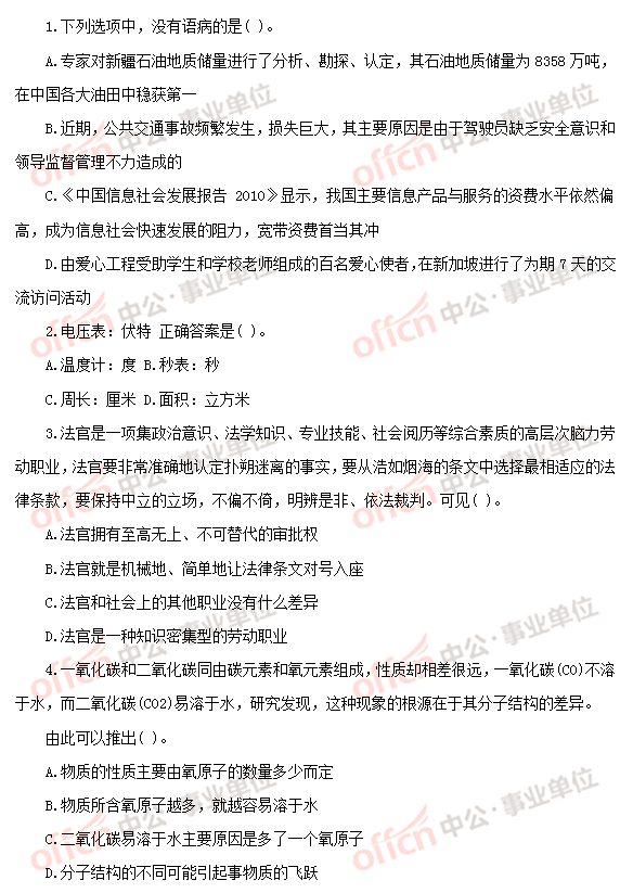 2012年四川成都市属事业单位真题精选职业能力倾向测验(二)