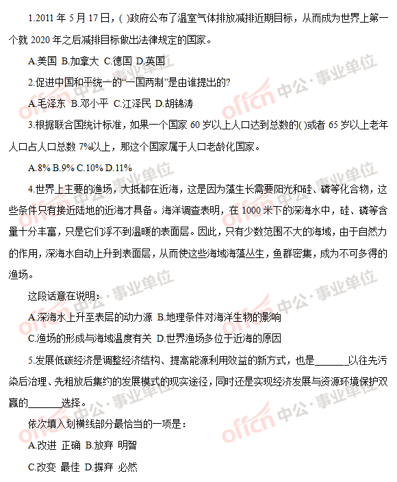 2012年辽宁省大连市事业单位真题精选综合知识与能力测试(四)