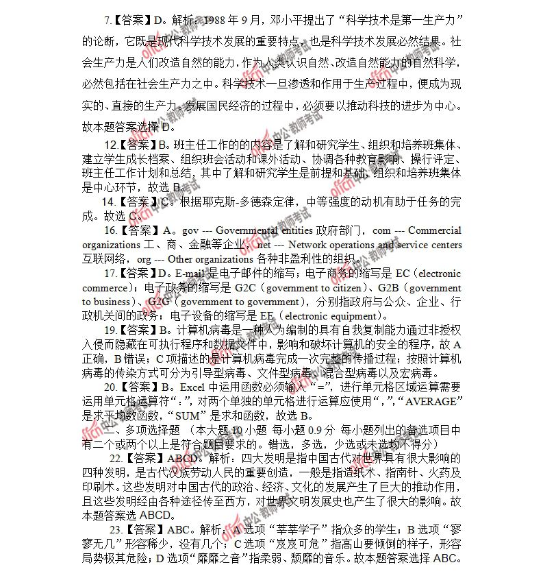 2015吉林榆树市事业单位招聘《初中信息综合类》真题详解