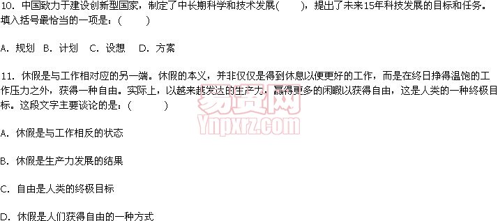一、言语理解与表达(每题0.5分,共10分)