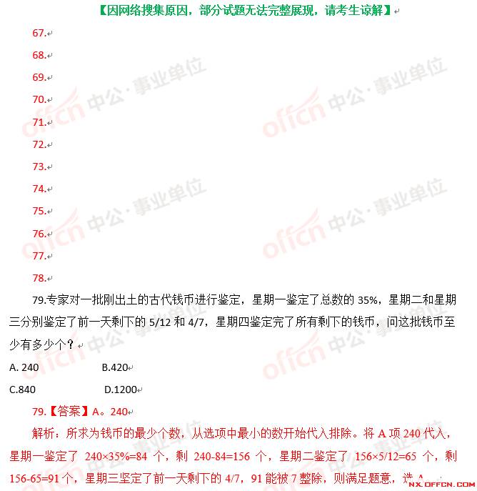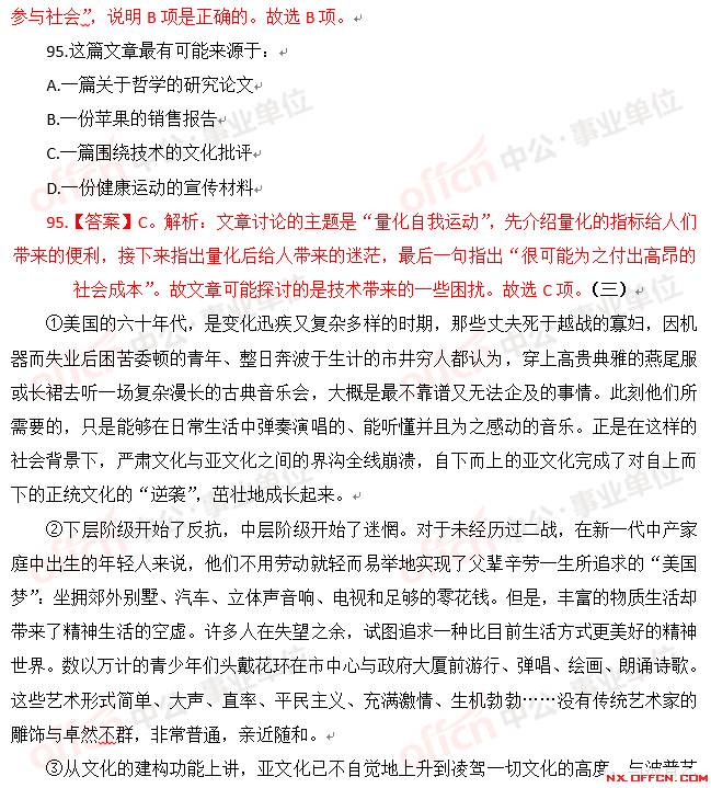 2015宁夏区下半年事业单位(B类)职测考试真题及解析