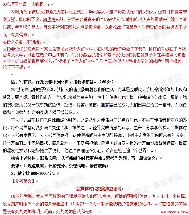 2015宁夏区下半年事业单位(B类)综合能力考试真题及解析