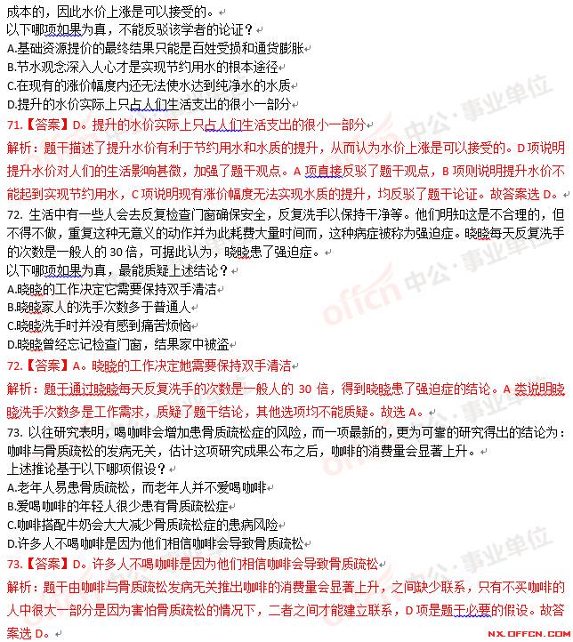 2015宁夏区下半年事业单位(C类)职测考试真题及解析