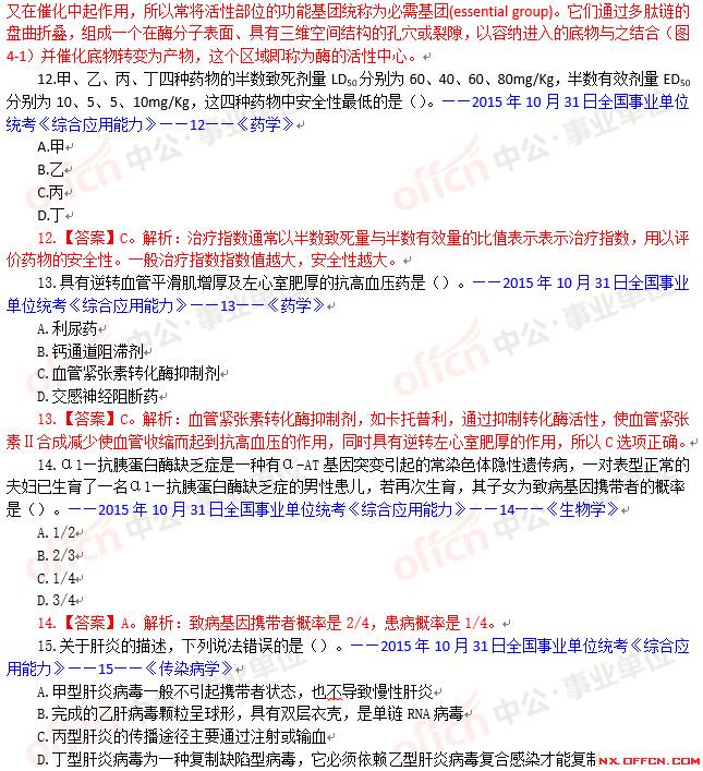 2015宁夏区下半年事业单位(E类)综合能力考试真题及解析