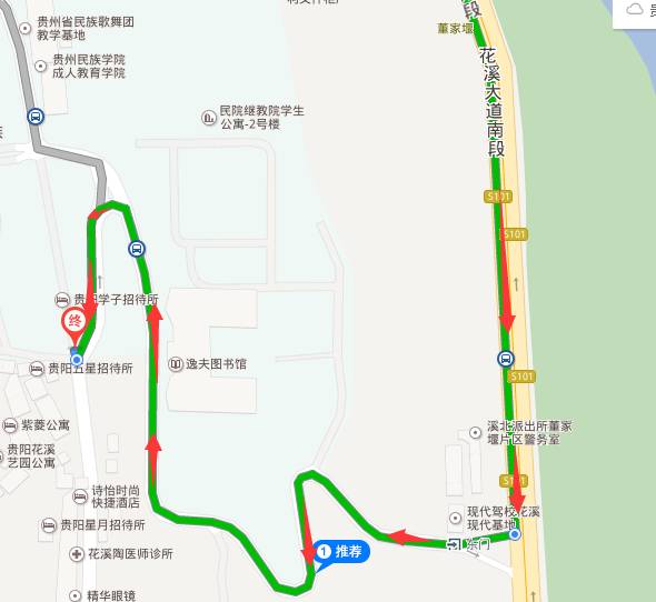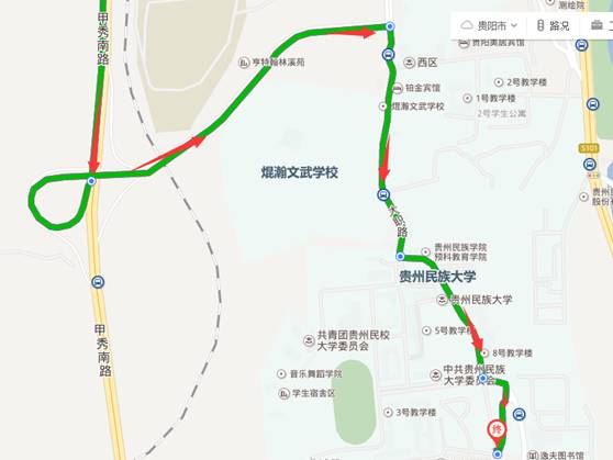 自驾路线(1)沿花溪大道至贵族民族大学。