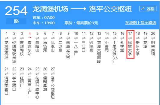 3. 龙洞堡机场:乘坐254公交车,到贵州民族大学站下车。
