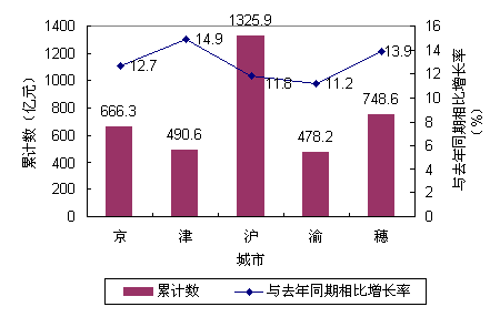 Ⅰ.2003年第一季度五个城市的GDP总量均实现了两位数增长