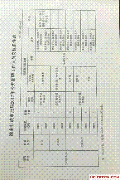 《滦南县行政审批局2017年公开招聘工作人员岗位条件表》