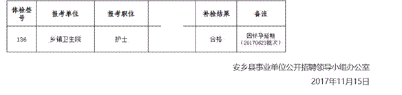 原标题:安乡县2017年事业单位公开招聘补检结果公示(续)
