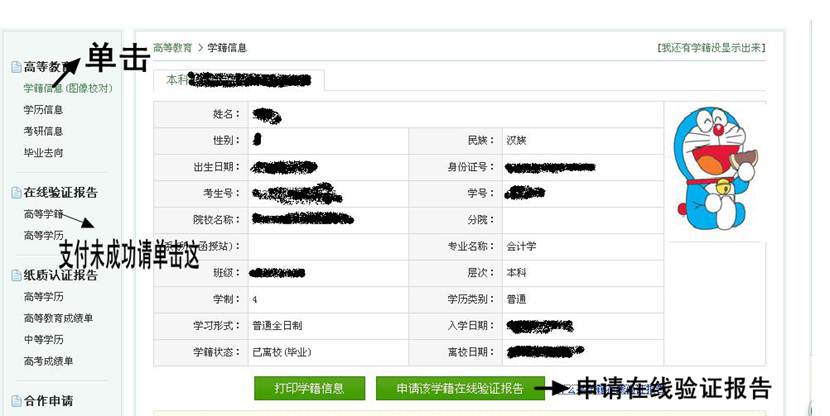 支付完成后查询(打印)所需要的学籍信息,状态持续一个月,不需要重复缴费。