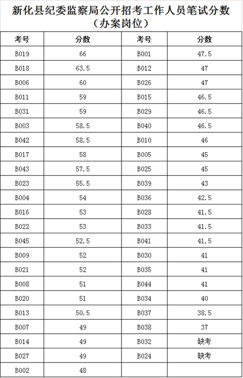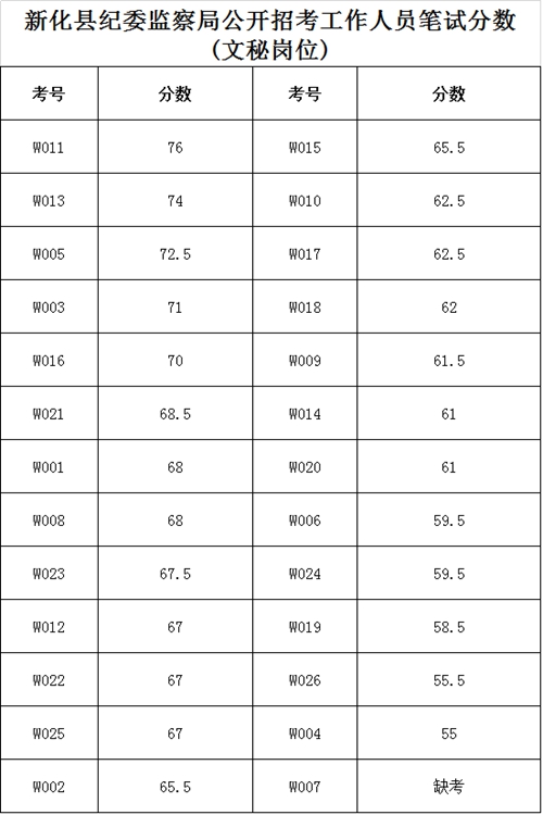 原标题:新化县纪委监察局公开招聘工作人员笔试分数公示