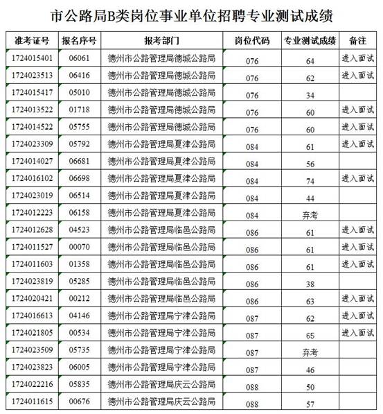 原标题:德州市公路管理局B类岗位事业单位招聘专业测试成绩公示