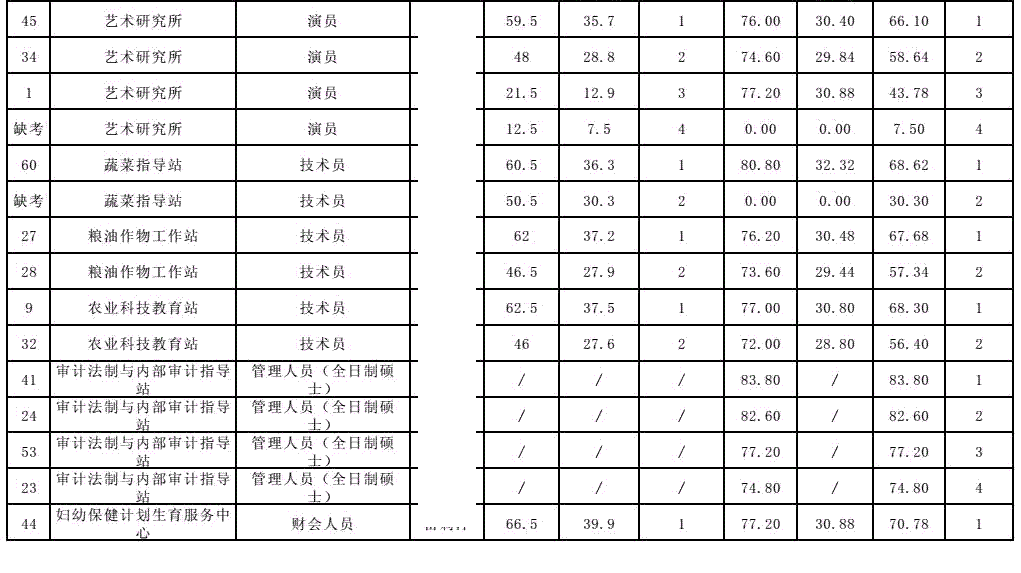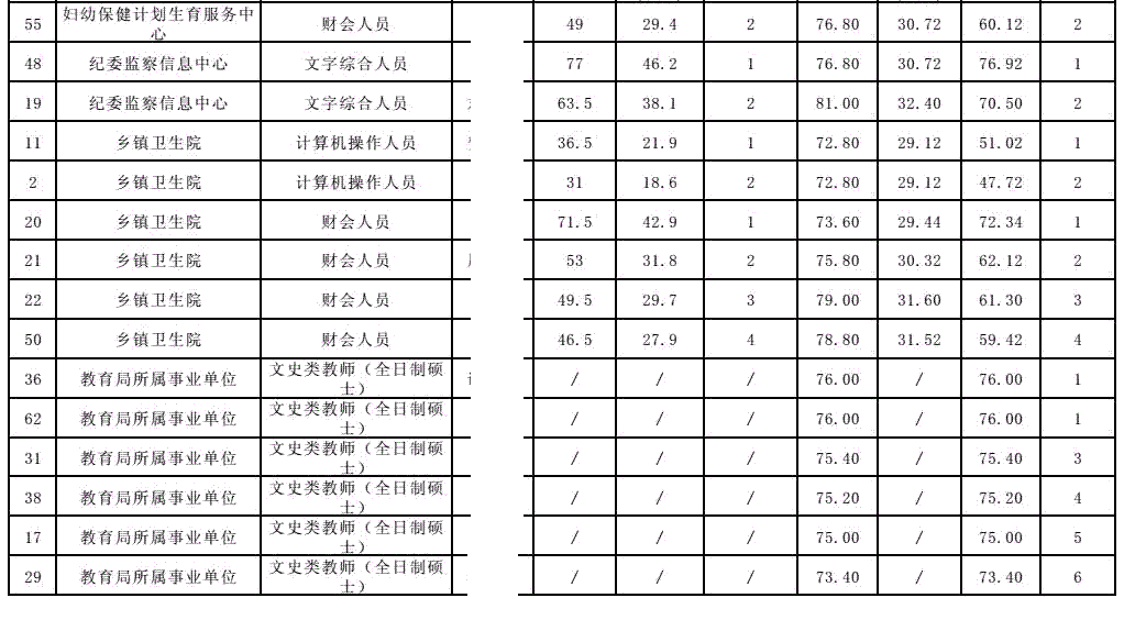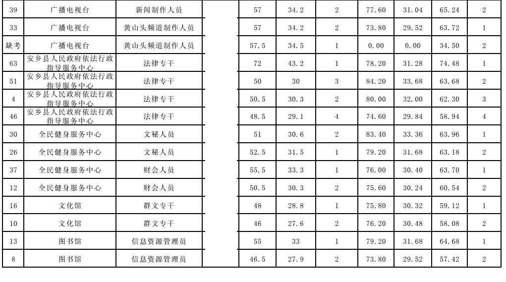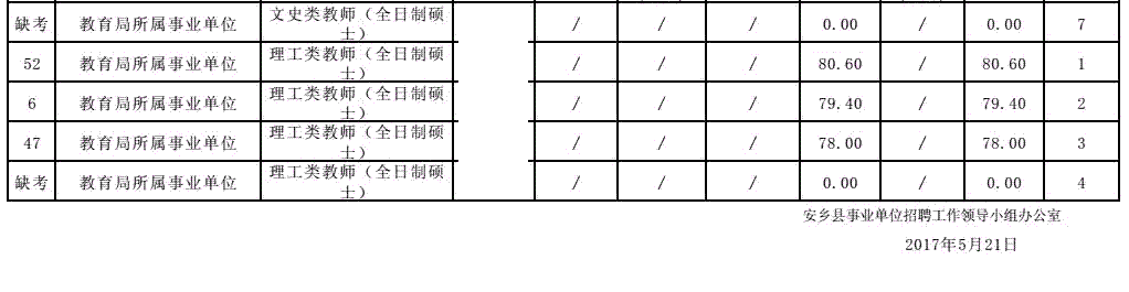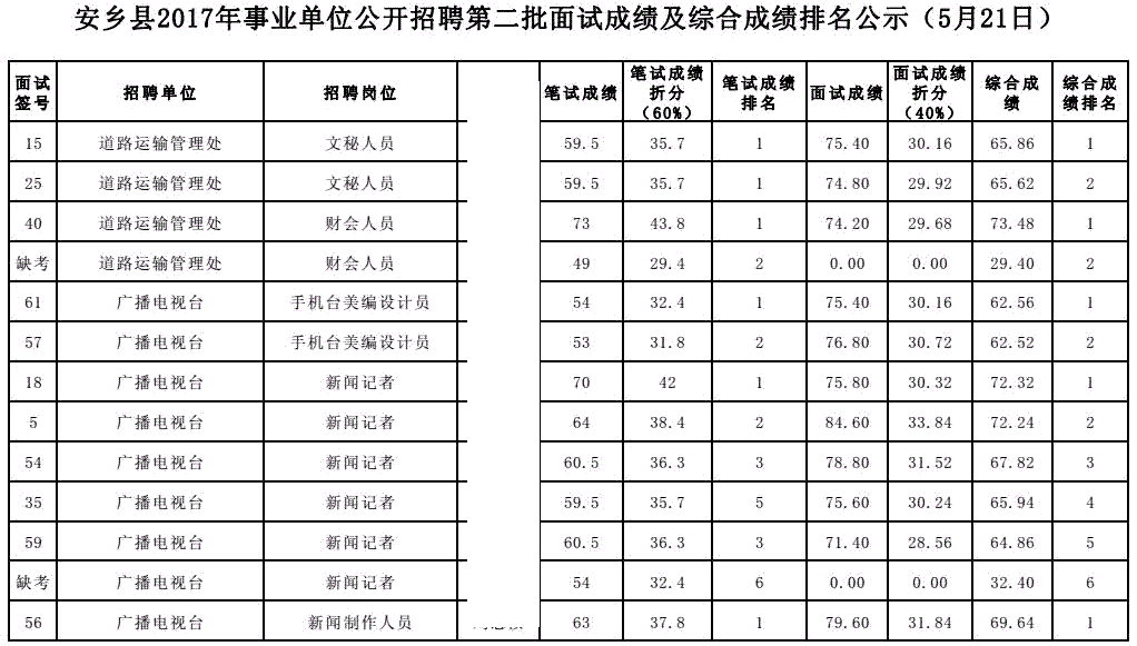 2017年安乡县事业单位公开招聘第二批面试成绩及综合成绩排名公示(5月21日)