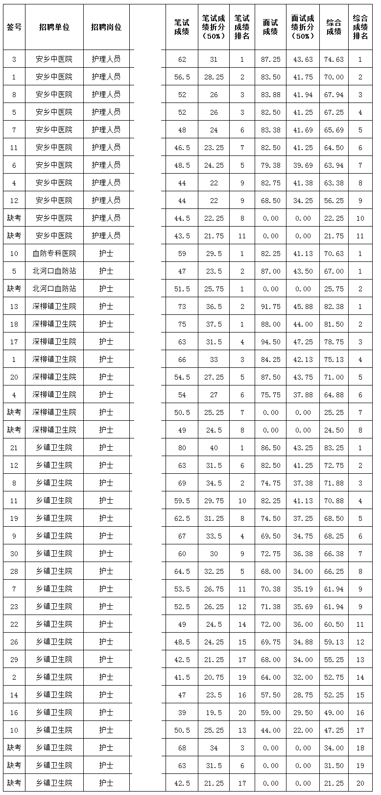 2017年安乡县事业单位公开招聘第三批面试成绩及综合成绩排名公示(6月4号)