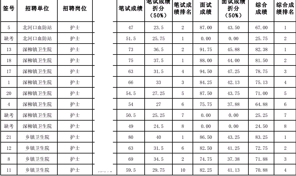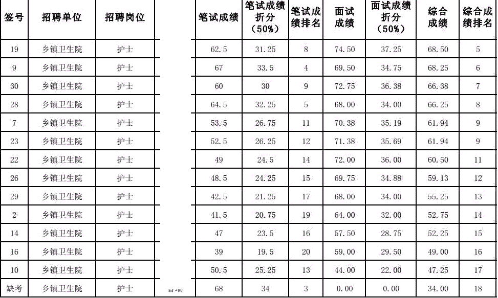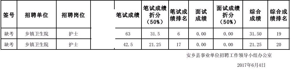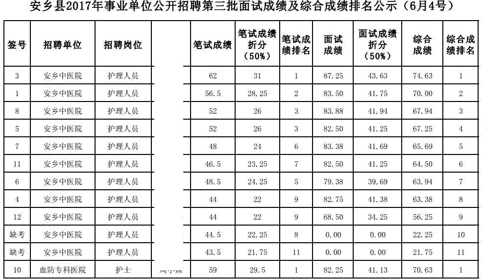 2017年安乡县事业单位公开招聘第三批面试成绩及综合成绩排名公示(6月4日)