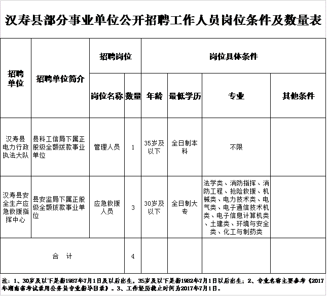 我县拟面向社会公开招聘工作人员4名。具体岗位及数量见附表。
