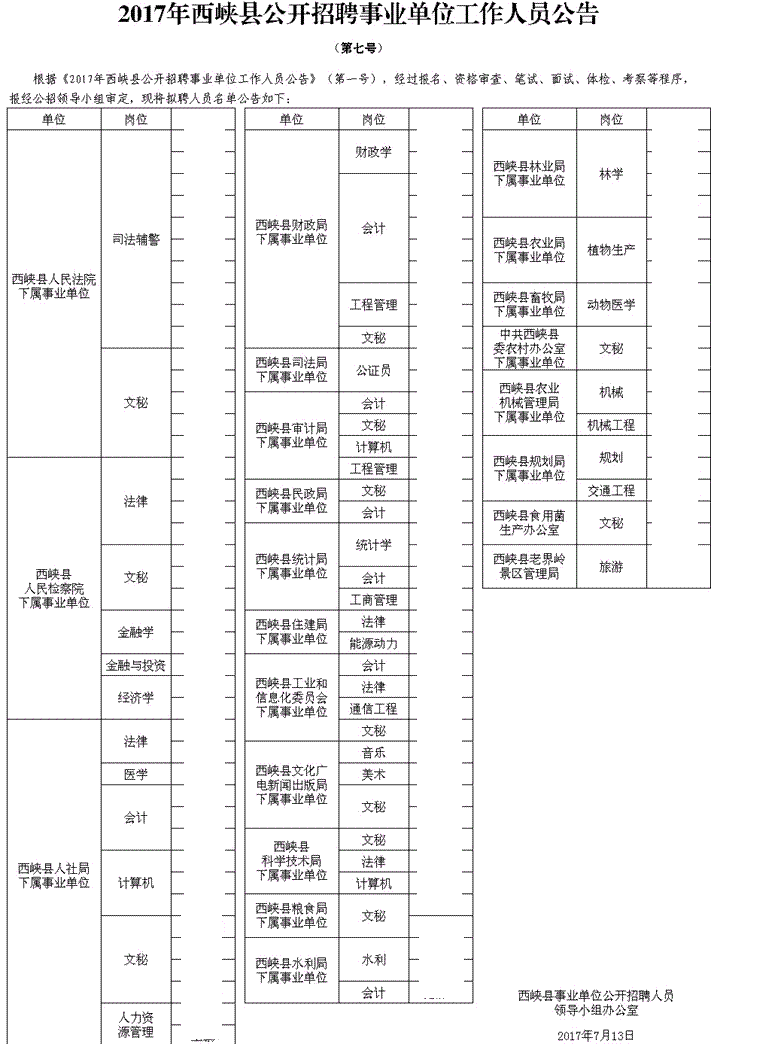2017年西峡县公开招聘事业单位工作人员公告(第七号)