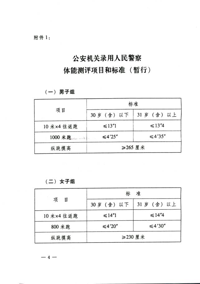 点击下载>>>公安机关录用人民警察体能测评项目和标准(暂行)