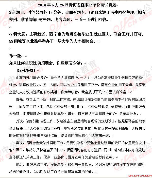 2014年6月30日青海省直事业单位面试真题