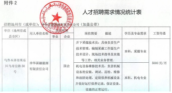 2014年4月新疆维吾尔自治区赴陕西相关高校招聘人才公告职位表(神华新疆公司)