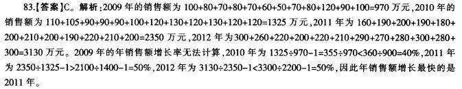 2013年8月河南省信阳市市直(精选):自2009年到2012年,年销售额增长最快的年份是:()