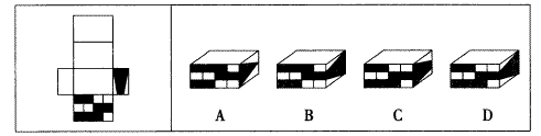 【答案】D。专家解析:A、B两项右侧面应为空白,C项右侧面梯形方向错误,D项能由给定图形折叠而成。